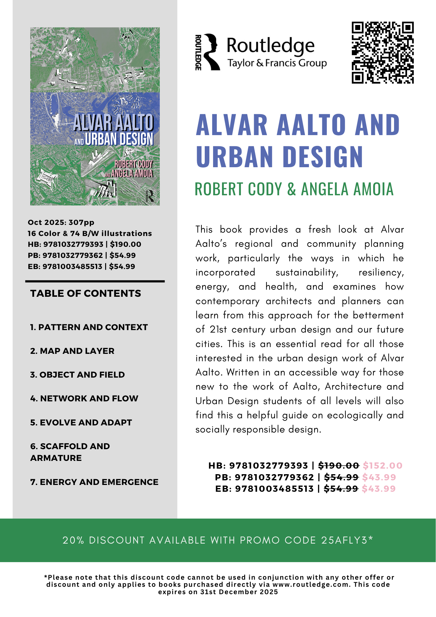 "A great introduction to both the field of urban design and the work of Alvar Aalto, which are more related to each other than one would initially believe. Beyond Aalto, the book illuminates the work of a robust broader cast of more or less well-known characters from the Modern period and beyond, including Lewis Mumford, Sigfried Giedion, Patrick Geddes, Eliel Saarinen, Stan Allen, Maurice Merleau-Ponty, Christopher Alexander, and Kevin Lynch."